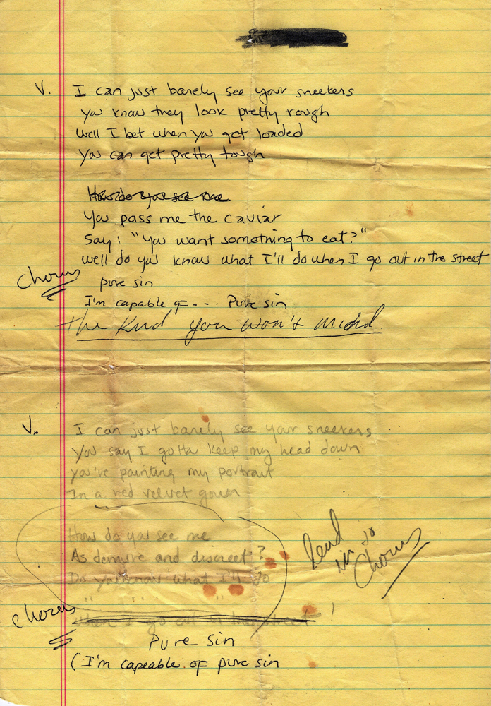 This is Carly Simon's Pure Sin Lyric Sheet that I was working on.